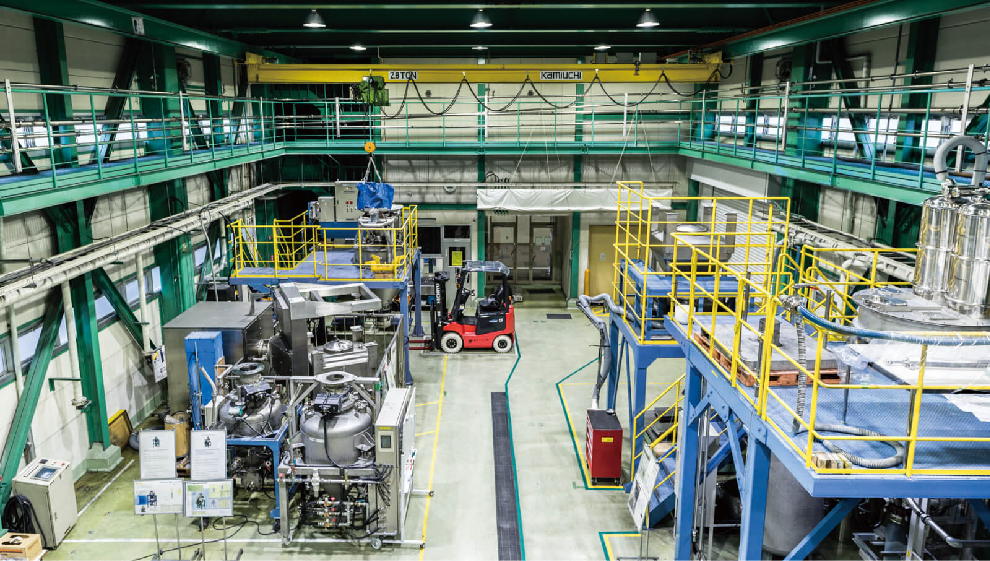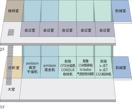 在第3棟,配備了混合?干燥測試設備、微粉碎?納米級別粉碎?分級測試設備、空調測試室。