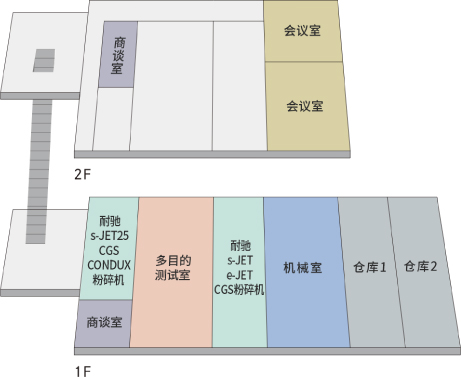 在第4棟,以粉碎測試為主,配備了多目的測試室。不僅單機測試,還可以對粉碎的前后工序進行測試。