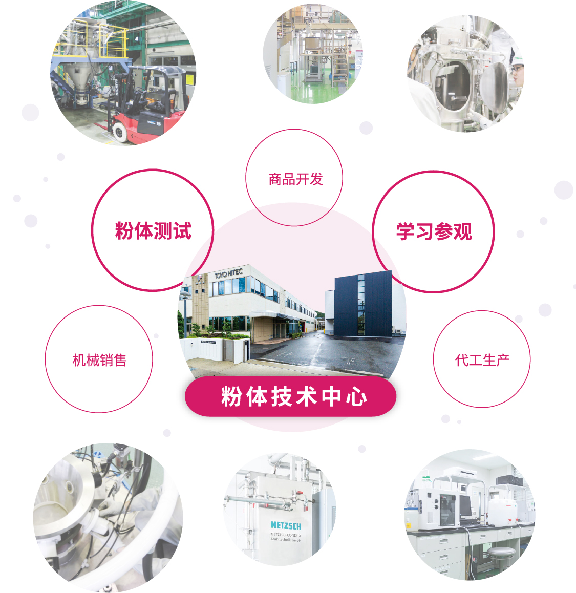 粉體技術中心是我們公司的技術核心,為食品、電池材料、化工等廣泛行業解決粉體工程
